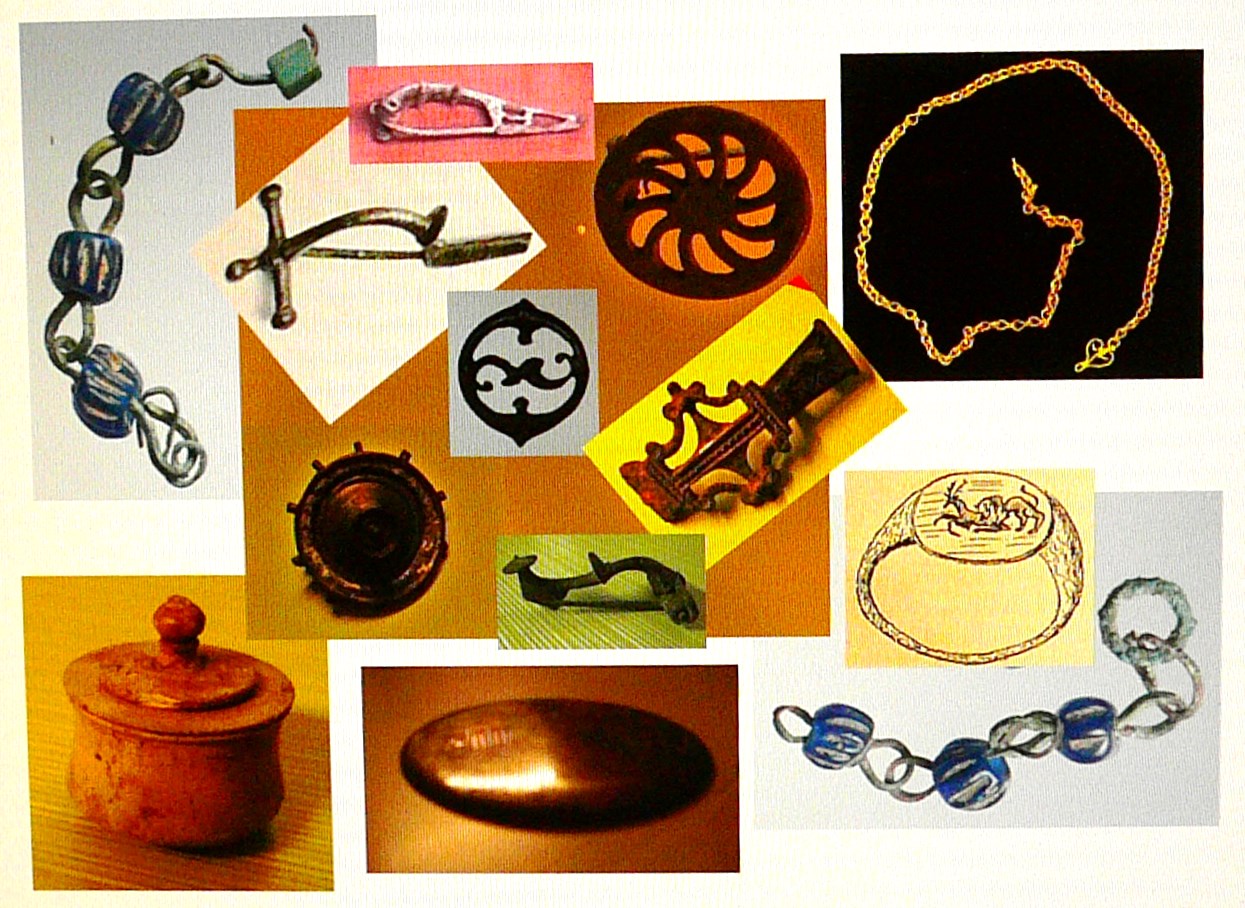 Münzen sind ein entscheidendes Hilfsmittel zur Datierung von Befunden. Man sollte sich vor Augen halten, daß zur Zeit der Römer reichsweit ein einheitliches Münzsystem galt, das auch überall angenommen wurde. In Gauting wurden etwa 460 Münzen gefunden; sie reichen von der Republik (40 v. Chr.) bis zu Valentinian (ca. 370 n.Chr.) . Ähnlich wie mit den Münzen verhält es sich mit den Gewandspangen (Fibeln), die aufgrund ihrer Formänderungen und bekannten Herstellungsbereiche helfen, Fundsituationen einzuordnen und zu datieren.